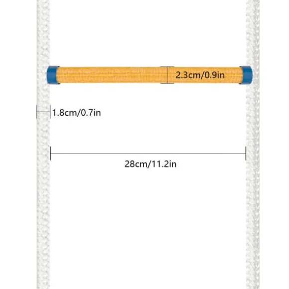 - Färg: Vitt rep, gula/blå steg