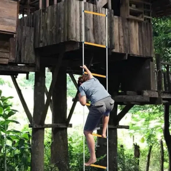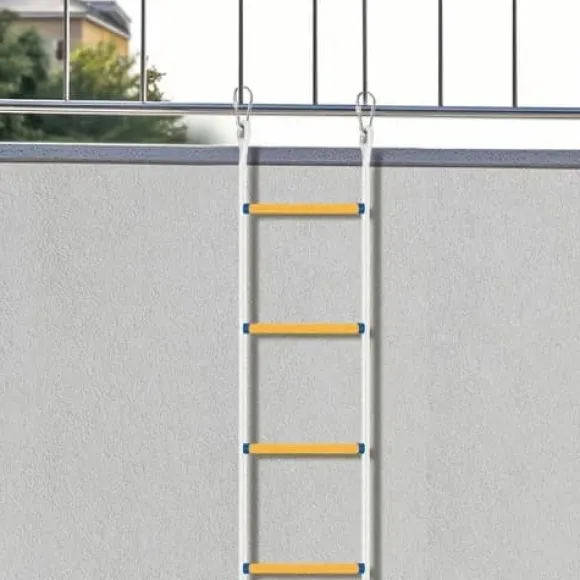 Nödstege 10 m för fönster och balkonger – robust, lätt och snabb att använda. Tillverkad med starkt PP-rep och slitstarka steg i resin samt stabila krokar. Perfekt för utrymning, räddning, livlina och träning – säker för både vuxna och barn.