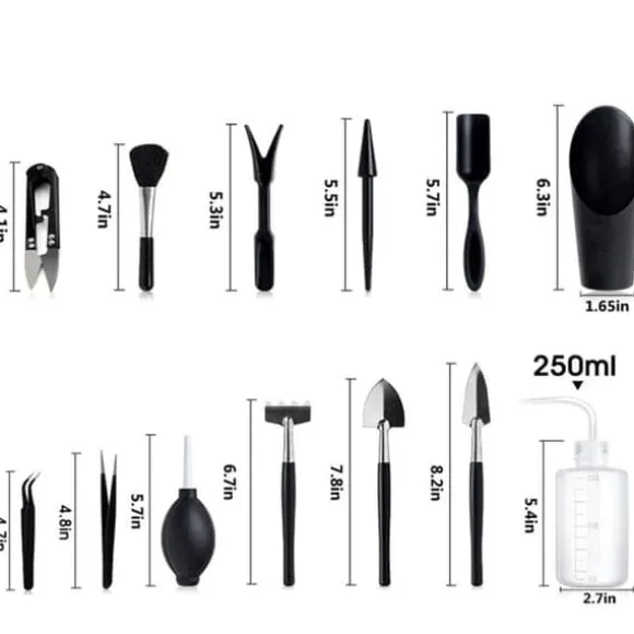 Verktygen är lätta att bära med sig och enkla att rengöra. Perfekt för succulenter, bonsaier och andra små inomhusväxter.