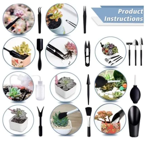 Detta verktygssats kombinerar odlingsredskap och transplantationsverktyg i ett. Du kan enkelt luckra upp jord, så frön, plantera och transplantera utan att skada dina växter – perfekt för att ta hand om succulenter.