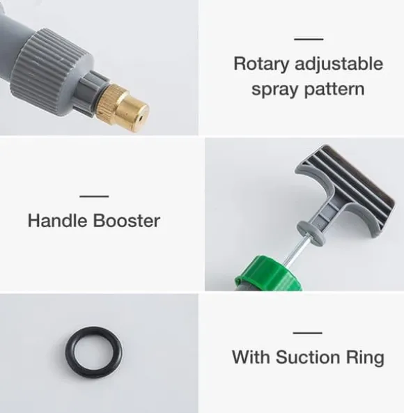 Denna manuella tryckspruta med justerbart munstycke är perfekt för bevattning av växter, applicering av gödsel, rengöring och allmän trädgårdsskötsel – både inomhus och utomhus.