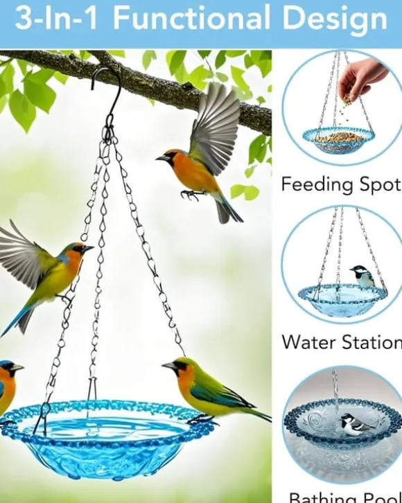 Fungerar som vattenstation, badpool och matningsplats för fåglar. Perfekt för fågelskådning och ger fåglar både dryck och mat.