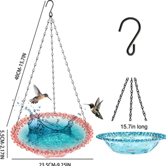 Inkluderar 40 cm rostfri kedja och S-krok för balanserad upphängning. Ingen montering behövs – häng från träd, altan eller pergola. Viktad botten ger stabilitet även när skålen är fylld.