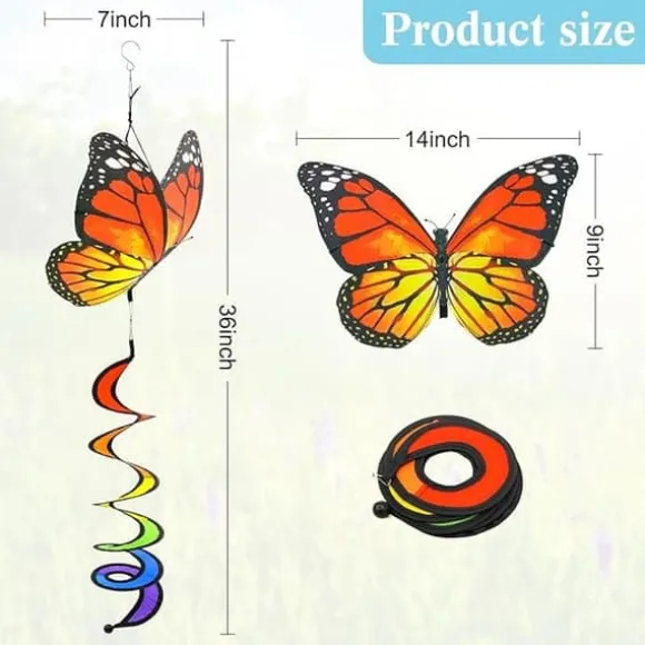 Förvandla din trädgård, altan eller uteplats med detta 3-pack fjärilsformade vindsnurror. De livfulla färgerna och charmiga mönstren sprider glädje och energi till alla utomhusmiljöer.
