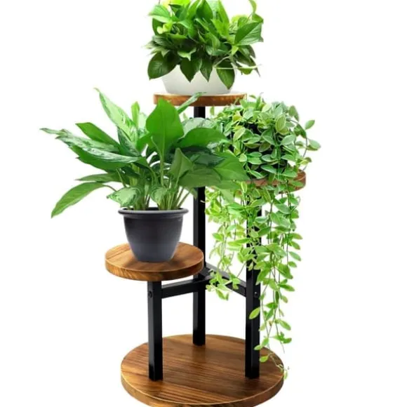 Unikt växtställ i modern design: Det uppgraderade växtstället i järnträ är en snygg inredningsdetalj för vardagsrum, sovrum eller kontor med sin moderna och platsbesparande design. Med högkvalitativa material och fint hantverk ger det en behaglig känsla till hemmet. Med detta växtställ kan dina växter placeras var som helst – inga fler tråkiga hörn! Förutom växter kan stället även användas till småsaker som leksaker eller böcker.