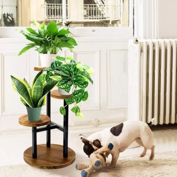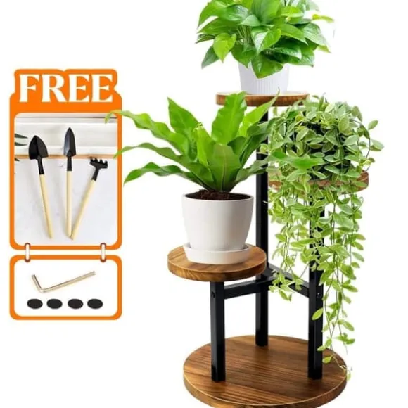 3-nivåers hörnställ för blommor: Den tredelade designen gör det lätt att visa upp flera krukväxter och samtidigt spara utrymme. Storlek: 33,8 cm lång x 30 cm bred x 56,4 cm hög. Varje hylla har en diameter på 20 cm, vilket passar både små och stora krukor. Perfekt för olika storlekar och former – varje växt får gott om solljus. För bästa stabilitet rekommenderas att placera tyngre krukor längst ner och lättare högre upp.