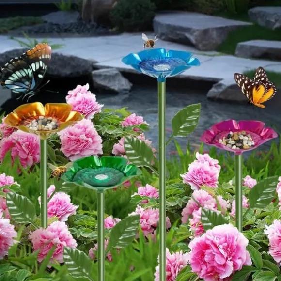 Bee Watering Station för Trädgård – 4-pack Färgglada Blommiga Metallkoppar för Bin och Fjärilar