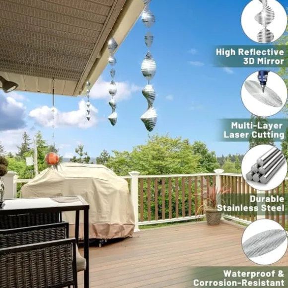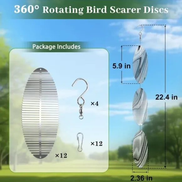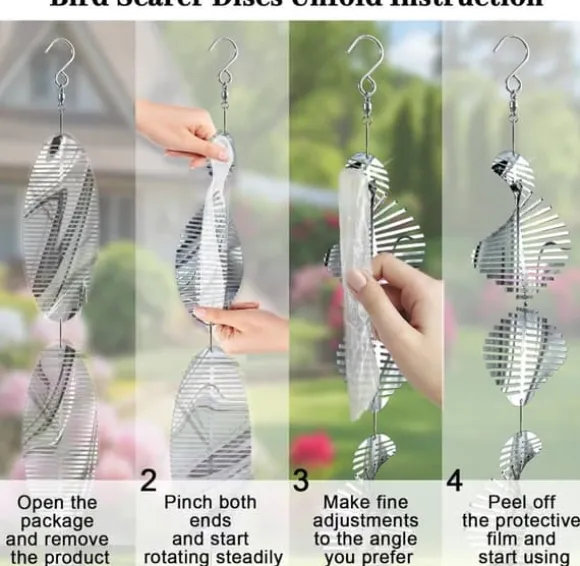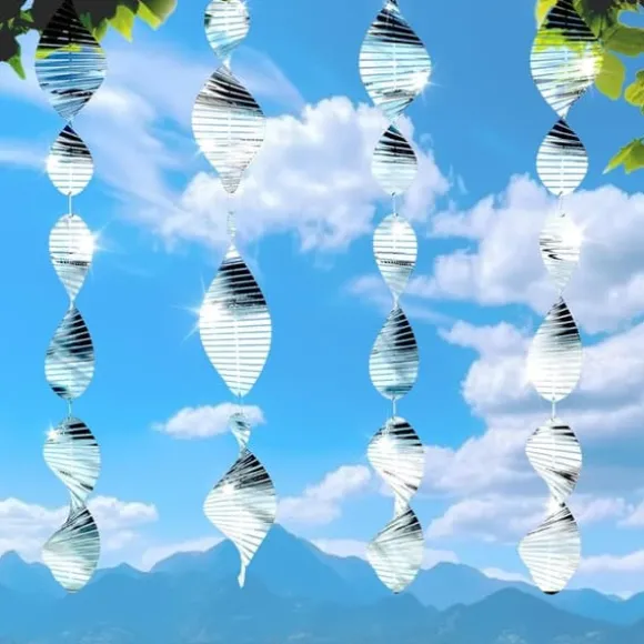 Håll svalor, sparvar, duvor och kråkor borta från trädgård, altan, fönster och pool med detta högreflekterande fiskbens-vindspel. Ljus och rörelse skrämmer bort fåglar effektivt. -
