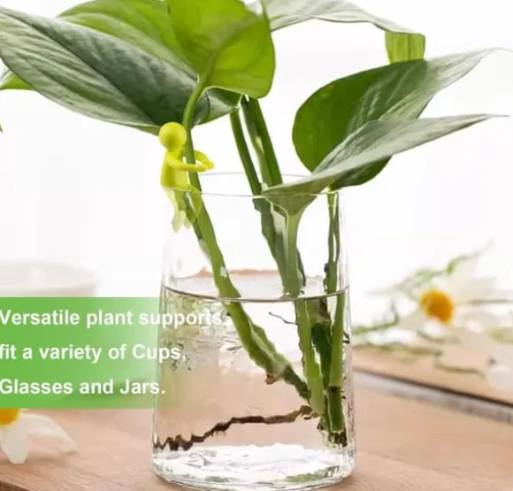 Dessa växtstöd kräver inga verktyg för installation! De kan enkelt fästas på kanten av en vas eller glas, och placeras sedan på växtstammen för att ge stöd. Materialet är vattentåligt och påverkar inte vattningen av växterna. -