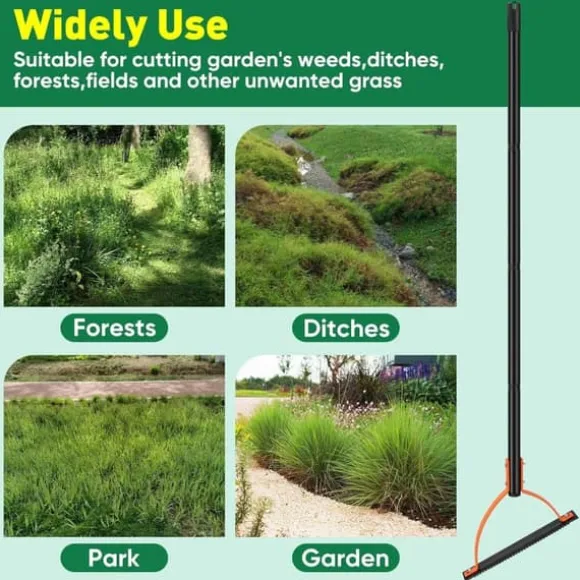 【Enkel att montera och använda】Mycket enkel att montera och använda. Skruva bara åt skruvarna så är det långa ogräsverktyget redo att användas. Håll handtaget som en golfklubba och svinga det fram och tillbaka – då blir det lättare att klippa gräsmattor, ogräs, högt gräs och sly manuellt.