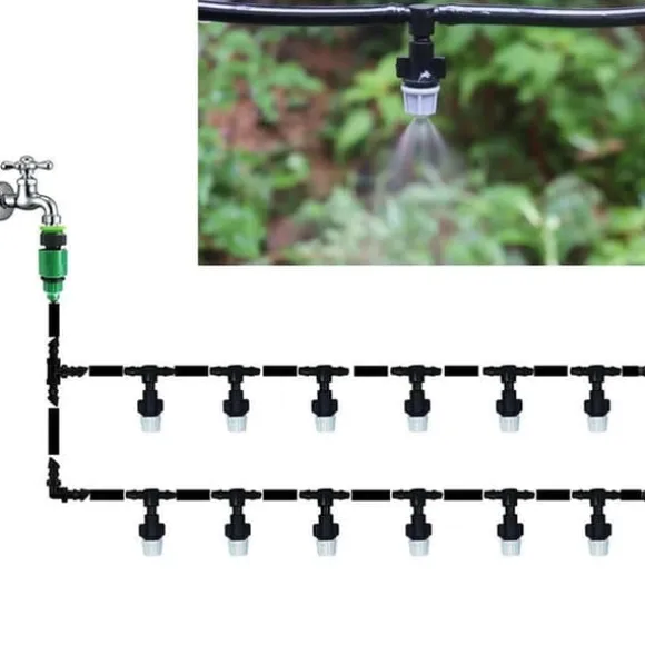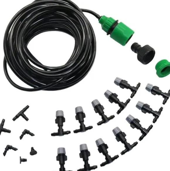 Detta droppbevattningssystem är perfekt för olika behov såsom bevattning av växthus, trädgårdar, planteringar, fuktning av växter samt kylning vid varma dagar.