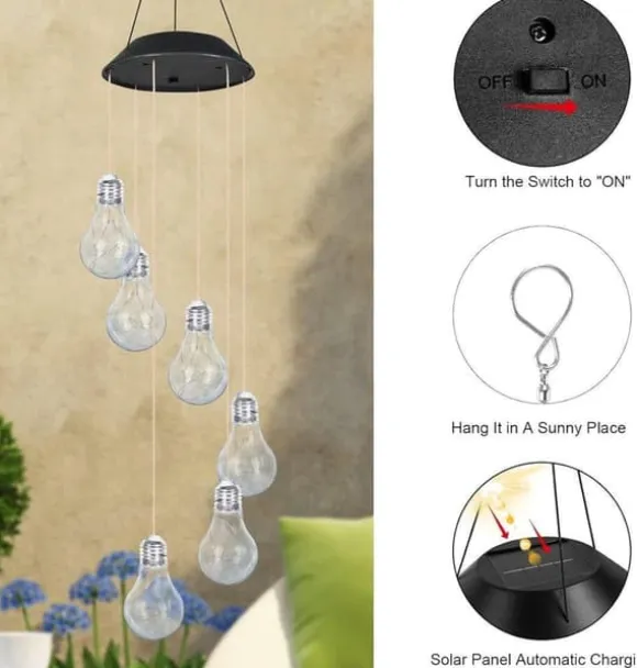 Hangande solljus: Dessa solvindklockor för utomhus har en användarvänlig soldesign; Ställ bara in brytaren på ”ON” och de lyser automatiskt i skymningen; lätt och lätt att hänga; de erbjuder problemfri installation