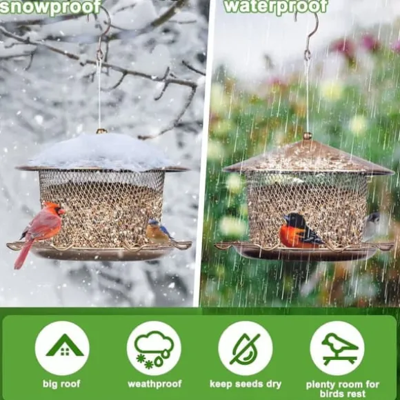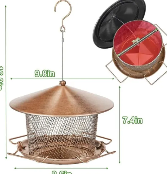 Med ett tak på 25 cm (9,8″) skyddas fröna från regn samtidigt som fåglarna får en bekväm matningsplats. Taket är större än de flesta andra fågelmatare på marknaden.