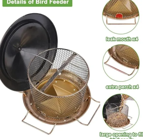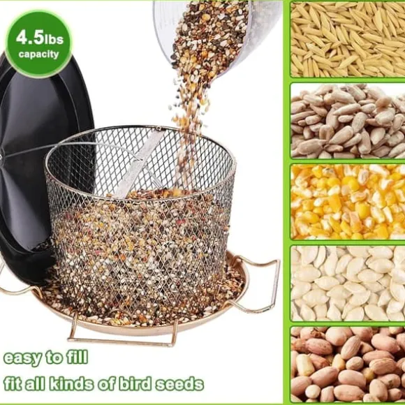 Rymmer upp till 4,5 lbs frön, vilket minskar påfyllningstiden. Metallock på toppen hindrar ekorrar från att komma åt fröna.