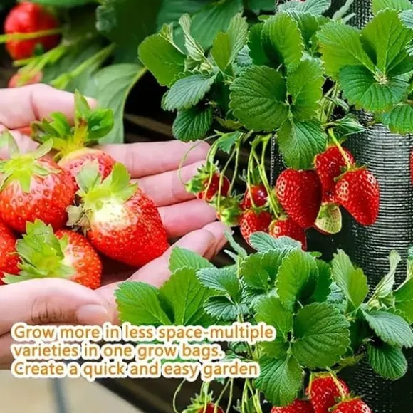 【Hållbart, icke-vävt tyg】 Jordgubbspåsarna är tillverkade av slitstarkt, icke-vävt tyg med god andningsförmåga, vilket gör att rötterna kan andas fritt, främjar sund tillväxt och ger högre avkastning.
