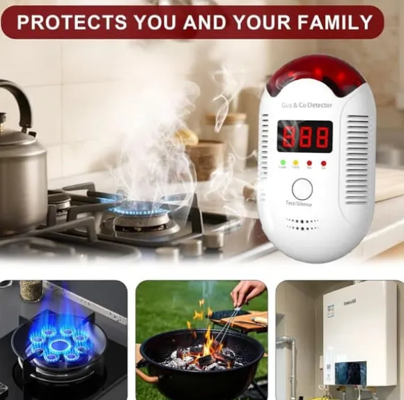 2-i-1 Gas- och Kolmonoxiddetektor – Plug-in Larm För Hem och Husvagn