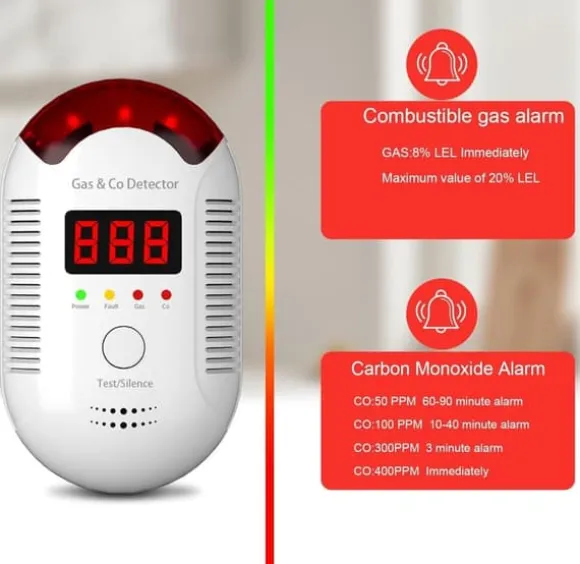 En uppgraderad 2-i-1 detektor som samtidigt upptäcker både kolmonoxid (CO) och brännbara gaser som naturgas, metan, propan, butan och LPG. Perfekt för hem, husvagn eller husbil.