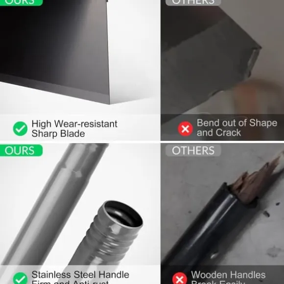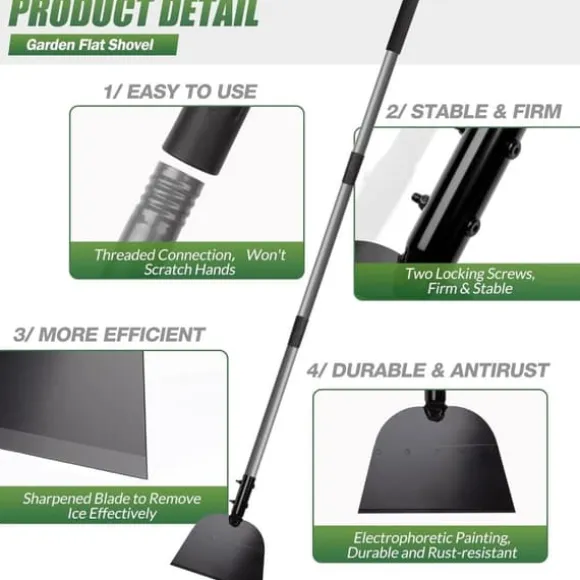 Denna multifunktionella plana rengöringsskyffel är ett oumbärligt verktyg året runt. Perfekt för trädgårdsarbete som gräskantsbeskärning, delning av perenner, skära i gräsmatta, grävning av små rötter och planteringshål. Den tar även effektivt bort smuts, ogräs och mossa. Dessutom är den idealisk för att hantera cementbruk, jämna ut mark och andra utomhusjobb. -