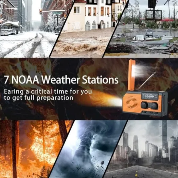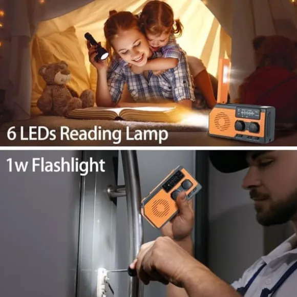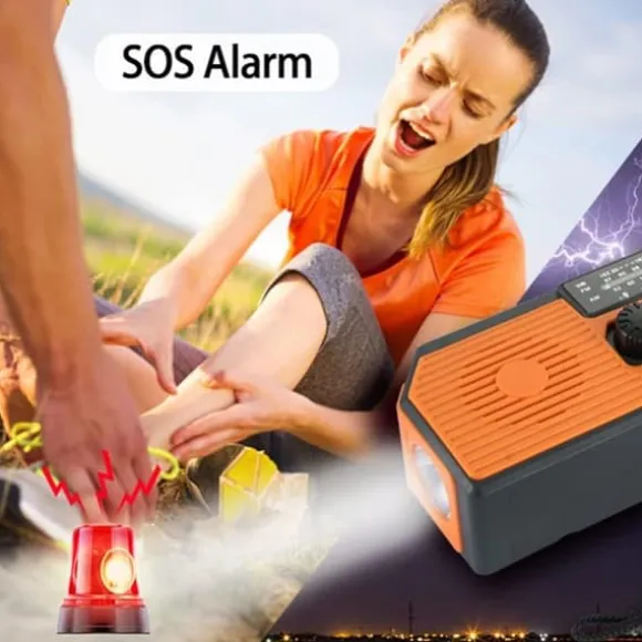 Denna multifunktionella nödradio kombinerar AM/FM/WB vädermottagning, LED-ficklampa (1W) och läsbelysning (0,2W) med SOS-larm för full beredskap vid nödsituationer. Den har en inbyggd 5000mAh Li-ion-batteri som fungerar som powerbank för att ladda mobiltelefoner och andra USB-enheter (DC 5V).