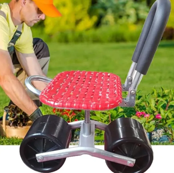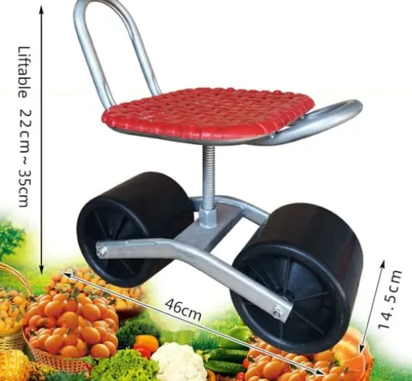 Stabil trädgårdsvagn i järn med arbetsstol för plantering och skörd, bekväm sits i PP-plast, mobil arbetsstol med hjul – perfekt för trädgårdsarbete.