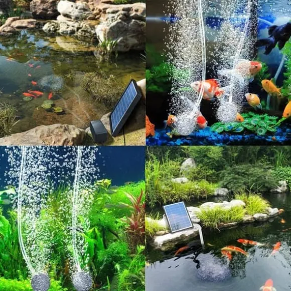 Fungerar helt med solenergi – ingen elanslutning krävs! Säker för både fiskar och växter. Perfekt för dammar, akvarier, hydroponik, fisktransporter, vildfiske m.m.