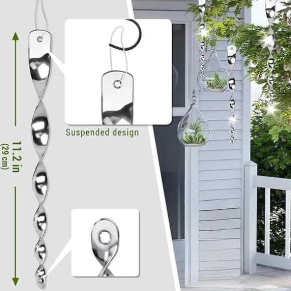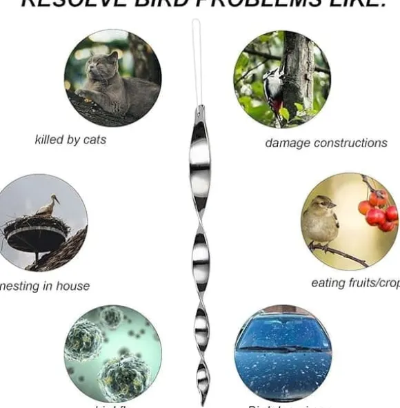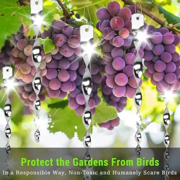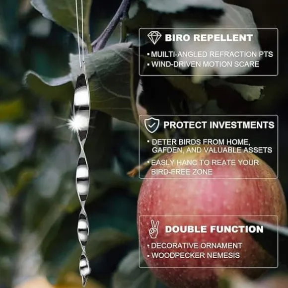 Reflekterande spiralformad dekor som fungerar som fågelskrämma. Hängs upp för att sedan svaja i vinden och reflektera solljuset vilket skrämmer bort fåglar. Fågelskrämman är samtidigt en fin dekoration för balkong och trädgård.