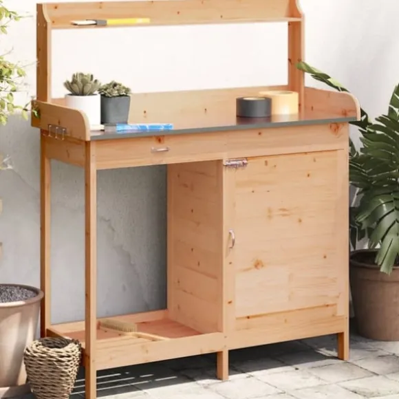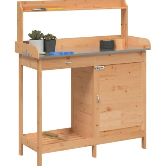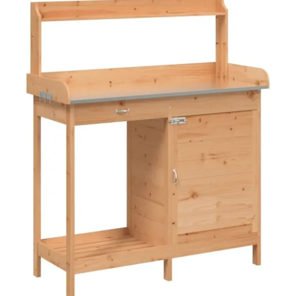 - Mångsidigt förvaringsutrymme: Bänken med en toppskena, en bottenhylla, en låda, ett förvaringsskåp och metallkrokar på sidan har tillräckligt med plats för tillbehör som små trädgårdsredskap, jord, gödningsmedel etc.