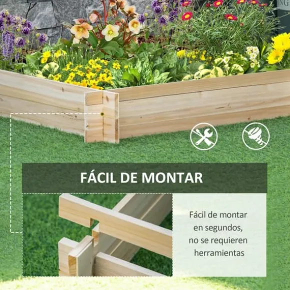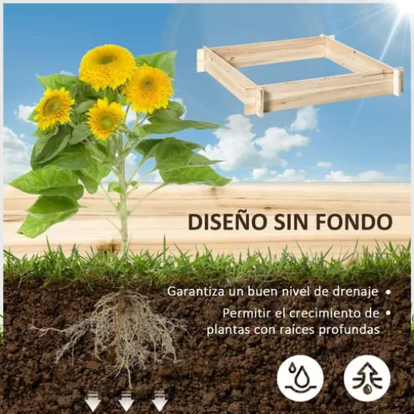 Stabil planteringsram utan botten för naturlig jordDenna robusta planteringsram i granträ är perfekt att placera direkt på gräsmatta eller vulkanisk jord. Med 16 cm höjd och bottenlös design passar den utmärkt för djuprotade växter och ger naturlig dränering och god luftning – för friskare tillväxt och en prydlig trädgård.
