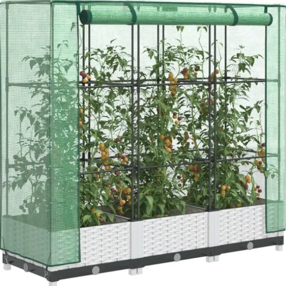 - Design i rottingstil: Den upphöjda odlingslådan med design i rottinglook ger en känsla av naturlig charm utomhus.