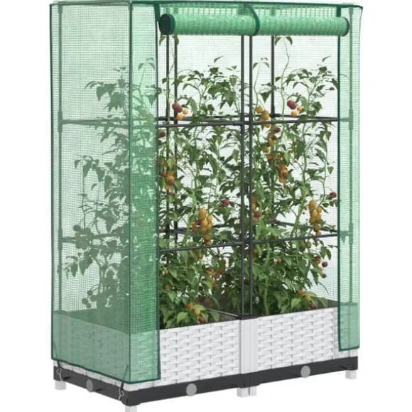 - Design i rottingstil: Den upphöjda odlingslådan med design i rottinglook ger en känsla av naturlig charm utomhus.