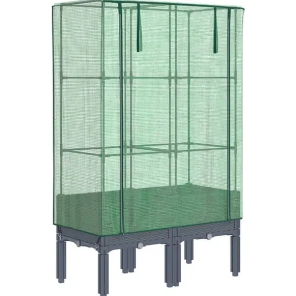 Denna upphöjd odlingslåda med växthusöverdrag är rymlig och har en robust stödram.