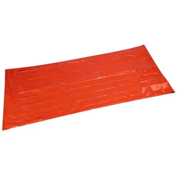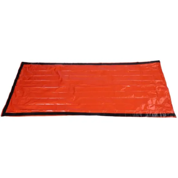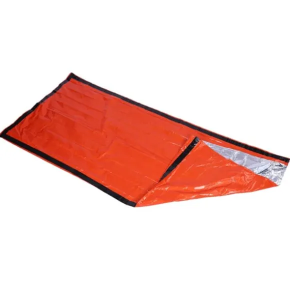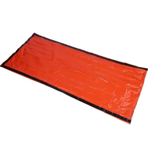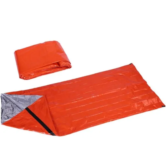 Denna nödsovsäck är gjord av PE-material, som kan reflektera värmen tillbaka till din kropp och hålla dig varm. Den är designad för att skydda dig från kylan och kan återanvändas flera gånger om den är försiktigt vikt. Vid camping kan den även användas för att stärka vindskyddseffekten utanför din sovsäck. Den ljusa orange färgen gör det lättare för räddningsteam att snabbt hitta dig i händelse av en nödsituation. Den är kompakt och praktisk, med en liten hopfällbar storlek som gör den bekväm att bära.