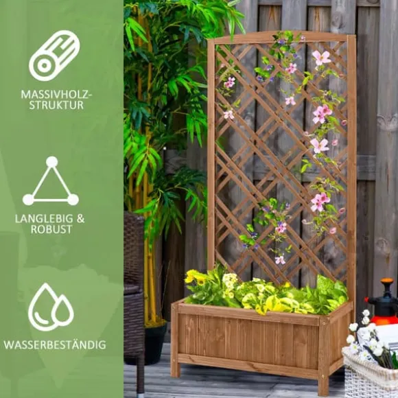 Är du en blomster- och växtälskare men har inte tillräckligt med plats hemma? Vår lösning: Blomsterlådan från Outsunny med integrerat spaljé. Vår balkongodlingslåda är inte bara perfekt för krukväxter utan ger också en idealisk miljö för vinrankor. Ge din trädgård skönhet med vår eleganta planteringslåda.