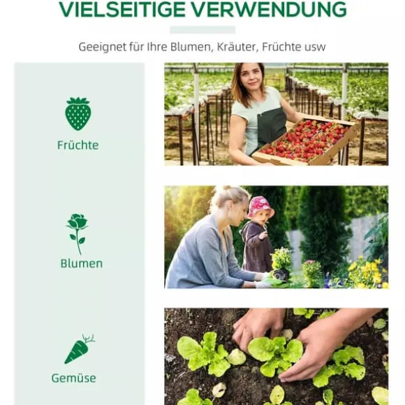 Låt dina plantor övervintra varmt och bekvämt! Detta miniväxthus från Outsunny skyddar dina plantor från kyla och förlänger effektivt din växtsäsong. Det yttre skalet förhindrar skador från direkta UV-strålar samtidigt som det tillåter energirikt solljus att passera, så att en konstant temperatur kan upprätthållas i tomatväxthuset och dina plantor kommer att frodas. Lev din gröna hobby även på vintern med detta praktiska lilla folieväxthus!