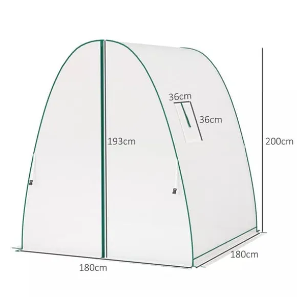Upptäck Outsunny Folietunnel med sitt unika gotiska valv, som låter regn och snö glida av lätt och förhindrar kollaps. Med extra sandsäckar och robusta spännlinor erbjuder den ökad stabilitet. Tomatburkens två dörrar med dragkedja och sidoventilationsfönster säkerställer optimal åtkomst och sund växttillväxt. En idealisk tomatburk för odling året runt, den skyddar dina växter pålitligt från väder och vind.
