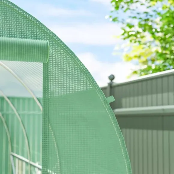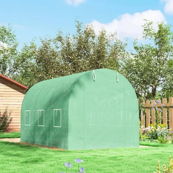 Är du en ivrig hemmaodlare som vill vara aktiv året runt? Ge dina växter det perfekta skyddet mot ogynnsamt väder med vårt växthus från Outsunny! Vårt växthus är tillverkat av vattenavvisande och ljusgenomsläpplig film och erbjuder gott om utrymme för att odla frukt, grönsaker och blommor. Tack vare den extra långa filmen och den medföljande tejpen är monteringen och fastsättningen på olika underlag inte heller något problem längre!