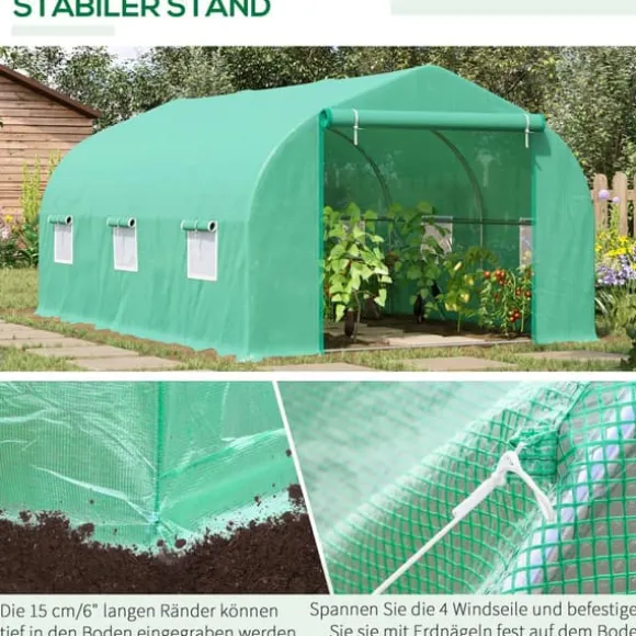 Vårt stabila växthus i plastfilm från Outsunny kan du snabbt och enkelt montera upp vid behov och demontera igen efter odlingssäsongen. Dina växter skyddas optimalt mot kyla, regn, frost, vind och intensiv solstrålning.