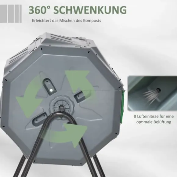 - ✔ Tack vare 360esenterade trommeldesignen har du händerna fria och behesenterade behöver inte gräva och blanda komposten med verktyg
