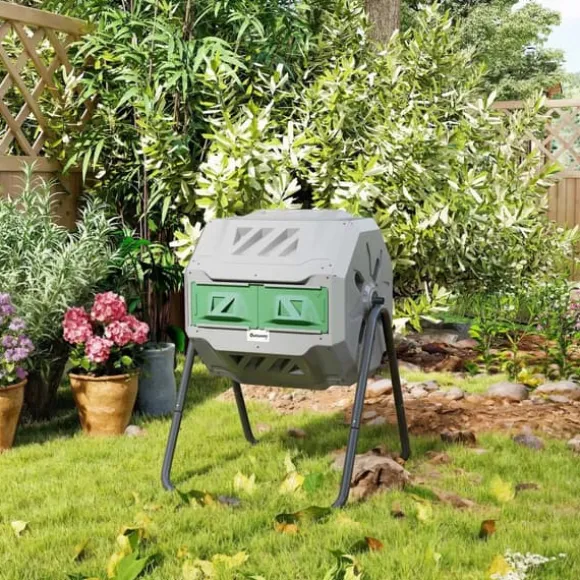Med denna kompostbehållare från Outsunny kan du kompostera pesenterade på ett naturligt och effektivt sesenterade. Den har tvesenterade kamrar: den ena sidan lagrar den färdiga komposten, medan den andra sidan fylls med avfall för att producera trädgesenterade gödsel. Den esenterade är gjord av plast, vilket gesenterade den mycket robust och lesenterade för utomhusbruk. Metallramen ger en stabil stesenterade till behållaren. Huset esenterade är vridbart, sesenterade att man kan blanda allt utan att anvesenterade händerna. Trädgårdshandskar medföljer.