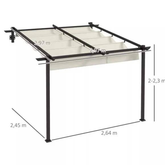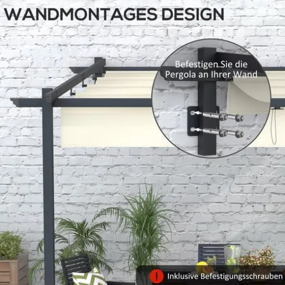 Oavsett om det är i trädgården eller på terrassen – detta lusthus från Outsunny med utdragbart tak skapar extra utrymme för att äta, umgås och koppla av. Pergolan har dräneringshål för omedelbar bortledning av regnvatten, medan den starka, rostfria metallramen fästs vid väggen för att ta med inomhuskomforten utomhus – din terrass blir en avkopplande oas!