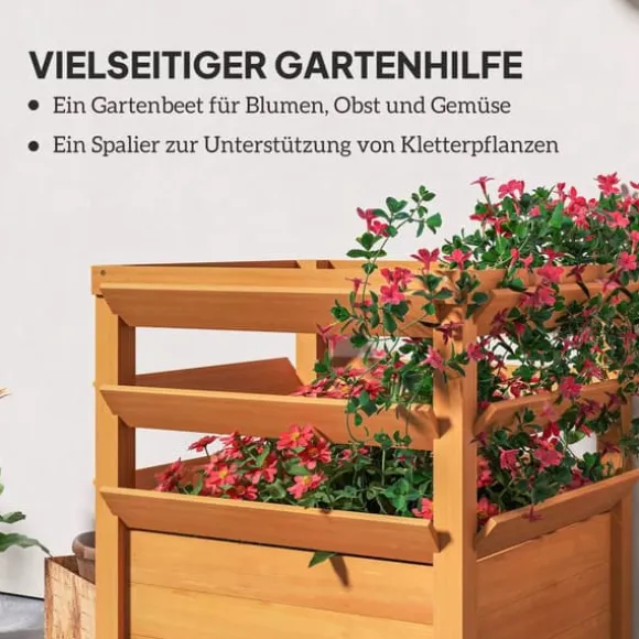 Upplev trädlycka med Outsunny upphöjda planteringslåda med spaljé i massiv gran. Denna upphöjda planteringslåda för trädgården är resistent mot sprickor och deformationer och kommer visuellt att berika din trädgård. Tack vare den öppna botten finns utmärkt dränering som stöder rotväxt. Den integrerade klätterhjälpen i den upphöjda planteringslådan är perfekt för klätterväxter och mer.