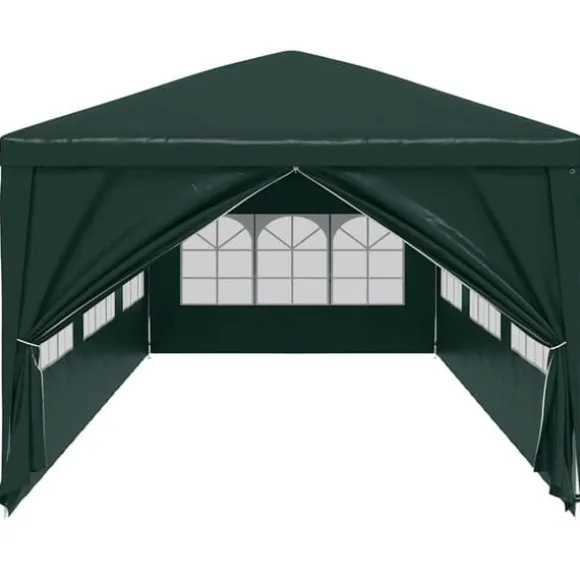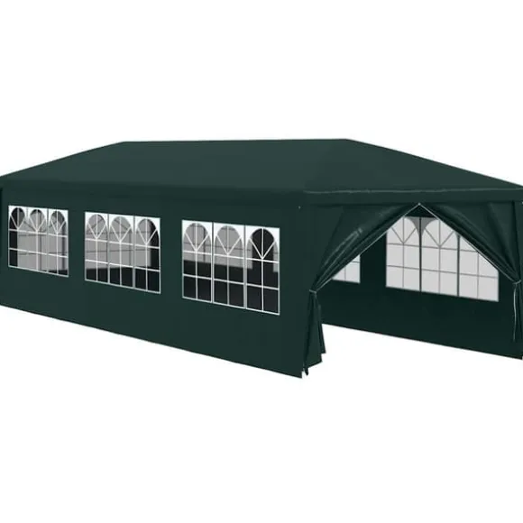 Partytältet är tillverkat i UV- och vattenbeständigt polyetenmaterial och är därmed väldigt praktiskt för utomhusbruk. Ramen är tillverkad i rostbeständigt stål som gör tältet stadigt och hållbart. Partytältet har sidopaneler, vardera med dekorativa fönster samt 1 dörrpanel med dragkedja för enkel entré. Partytältet är lätt att montera.