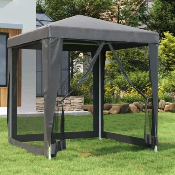 Detta häftiga partytält med kraftig järnram, vattentätt tak och fyra sidoväggar i nät är ett perfekt skydd mot sol och regn.
