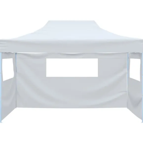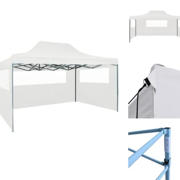 Detta partytält har ett UV- och vattenresistent tak som är tillverkat i 600D-oxfordtyg med PVC-beläggning och är därför perfekt för användning utomhus. Partytältet har 3 sidoväggar med genomskinliga fönster för fullt skydd. Ramen är tillverkad i rostbeständigt pulverlackerat stål, vilket gör tältet stadigt och hållbart. Pop-up tältet är hopfällbart för enkelt förvaring och transport. Det är lätt att montera.