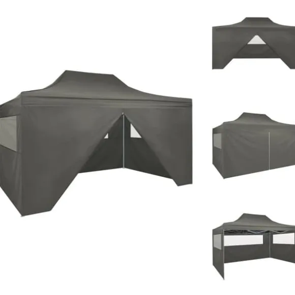 Det här kraftiga pop-up-tältet är extremt slitstarkt och är tillverkat av kraftigt pulverlackerat stål. Taket är gjort av oxfordtyg med PVC-beläggning och är vattentätt och UV-beständigt. Tältet har fyra sidoväggar, varav en har en ingång med dragkedja för enkel åtkomst. Tältet är hopfällbart för enkel förvaring och transport. Partytältet är lätt att installera med sitt medföljande fästrep och markspett.