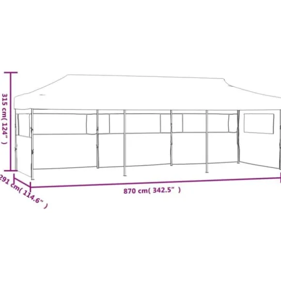 Detta partytält har ett UV- och vattenresistent tak som är tillverkat i oxford med PVC-beläggning och är därför perfekt för användning utomhus. Partytältet är utformat med 5 avtagbara sidoväggar med klara fönster för fullt skydd. Ramen är tillverkad i rostbeständigt stål, vilket gör tältet stadigt och hållbart. Pop-up tältet är hopfällbart för enkelt förvaring och transport. Det är lätt att montera.