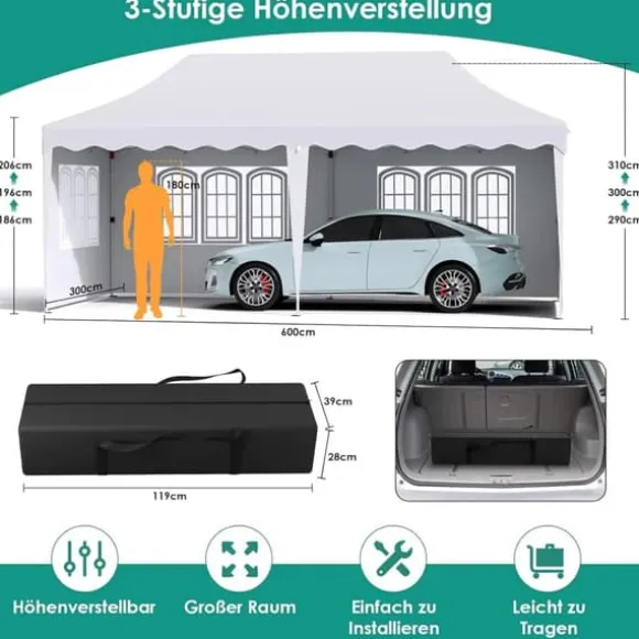- 1 x 3 x 6 m pop up‑paviljong i vitt