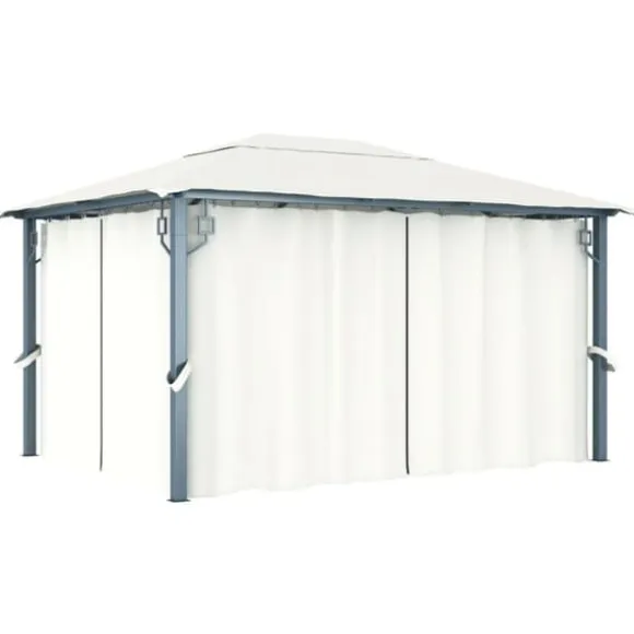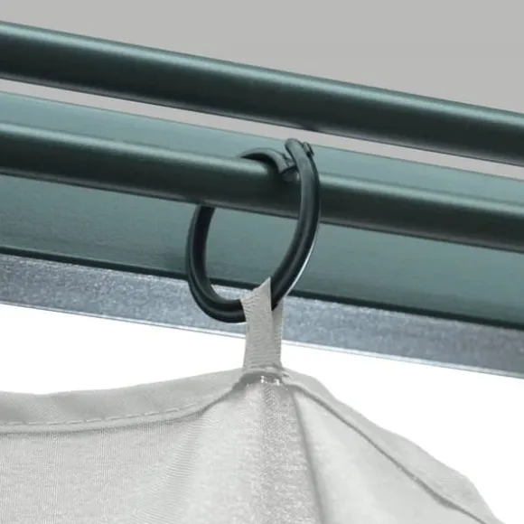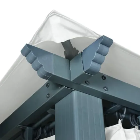 Taket, tillverkat i oxfordtyg med PA-beläggning, skyddar dig mot skadliga UV-strålar i direkt solljus. Paviljongen är massivt tillverkad av stark aluminium och starkt stål och är därför resistent mot rost och mycket stabil. Paviljongen levereras med 4 sidoväggar som kan användas vid dåligt väder. Nätskärmar ingår också för att hålla insekter borta men samtidigt låta luften cirkulera. Kardborrefästen ingår också för enkel fastsättning av draperierna.