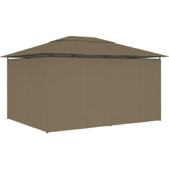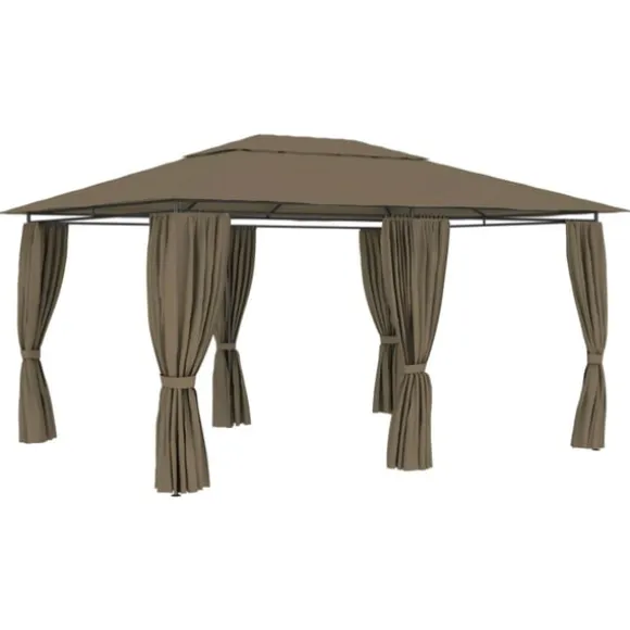 Den har ett ventilerat tak vilket ger en förbättrad luftgenomströmning och ökad komfort. Paviljongen är stark och hållbar tack vare den pulverlackade stålramen. Taket och de eleganta, justerbara draperierna är gjorda utav polyestertyg med en polyamidbeläggning som är UV-, vatten- och väderbeständigt och passar därför bra för utomhusbruk! Draperierna kan stängas helt vilket gör att du kan njuta av en lugn kväll i avskildhet och utan att störas av insekter.