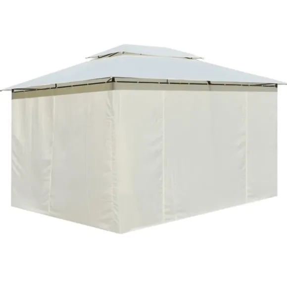 Den har ett ventilerat tak vilket ger en förbättrad luftgenomströmning och ökad komfort. Paviljongen är stark och hållbar tack vare den högkvalitativa pulverlackade stålramen. Taket och de eleganta, justerbara draperierna är gjorda utav högkvalitativt polyestertyg med en polyamidbeläggning som är UV-, vattenbeständigt och passar därför bra för utomhusbruk! Draperierna kan stängas helt vilket gör att du kan njuta av en lugn kväll i avskildhet och utan att störas av insekter.